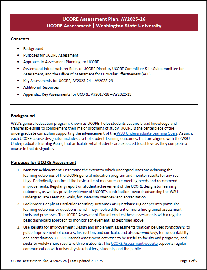 • Supporting and improving meaningful and sustainable assessment processes for the UCORE general education curriculum, courses, and related support.